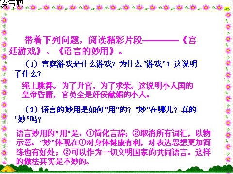 | | 网站首页 | 佳作欣赏 | 写作园地 | 古文译注 | 花季青春 | 演讲口才 | 知识百科 | 刘言非语 | 班级教学 | 备课资源 | 公开课 | | ||